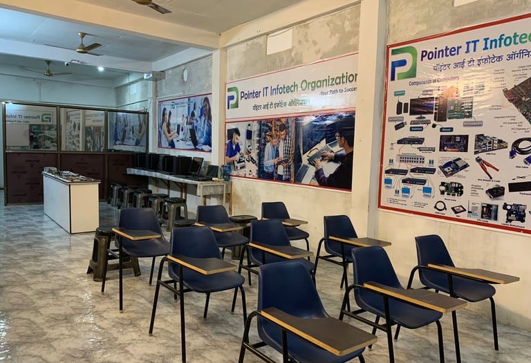 Take a look inside our classroom at Pointer IT Infotech! Experience hands-on learning in Computer Hardware & Networking, Computer Applications, and Skill Development Courses—where students build real-world expertise for today’s digital world.